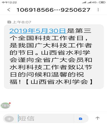 5月30日,学会通过学会通过天元短信平台向全省3500余会员发送了节日祝福短信。