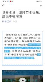 3月22日,在“科普辽宁”微信公众号上循环播放了公益宣传片,组织各市水利学会、各单位会员在线收听收看“水利云讲堂”,举办网上答题活动并编印《关于水利人人都应该知道的一些事儿》科普小册子,在水周期间,免费提供“水利科技创新知识服务平台”数据库的查阅和下载。