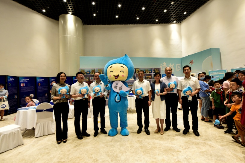 “水宝”与罗小云副省长、科协、省水利厅领导、江风益院士合影