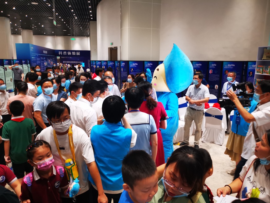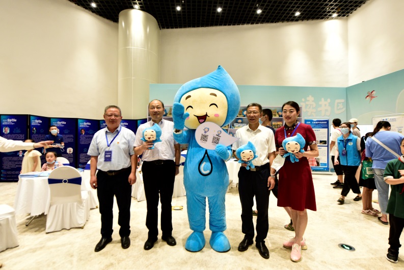 活动现场,学会及省水科院科普志愿者身穿蓝色马甲,通过开展有奖节水问答的方式,向在场观众发放了“水宝”卡通玩偶。现场还有一只“水宝”格外显眼,只见“他”穿戴着憨态可掬的大型“水宝”人偶服饰,不时与在场观众进行可爱互动与亲切合影。活动现场还向驻足观展的观众发放了江西省水利学会、江西省研促会等相关的宣传画册,介绍了我会及省水科院开展的相关科普工作。学会及省水科院科普志愿者化身节水与生态的践行者和有力推动者,以入目入耳、入心化形的方式,进一步促进了节水与生态理念在公众的覆盖面与普及率。