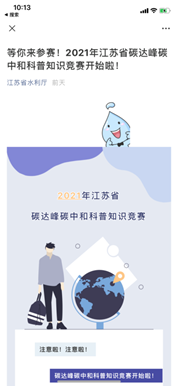 9月11日—25日,由江苏省科学技术协会、江苏省科技厅、江苏省生态环境厅、江苏省住房和城乡建设厅、江苏省水利厅主办;省科学传播中心、省水利学会、省低碳技术学会、南京市鼓楼区科协、南京市鼓楼区生态环境局承办,以“全民参与节能减排 拥抱绿色低碳时代”为主题的江苏省碳达峰碳中和科普知识竞赛,圆满落幕。